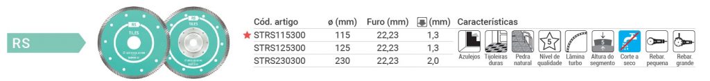 Disco de corte diamantado p/ tijoleira. Corta azulejo, pedra natural e vidro. Com lâmina turbo para corte rápido nos ladrilhos duros e pedras naturais.